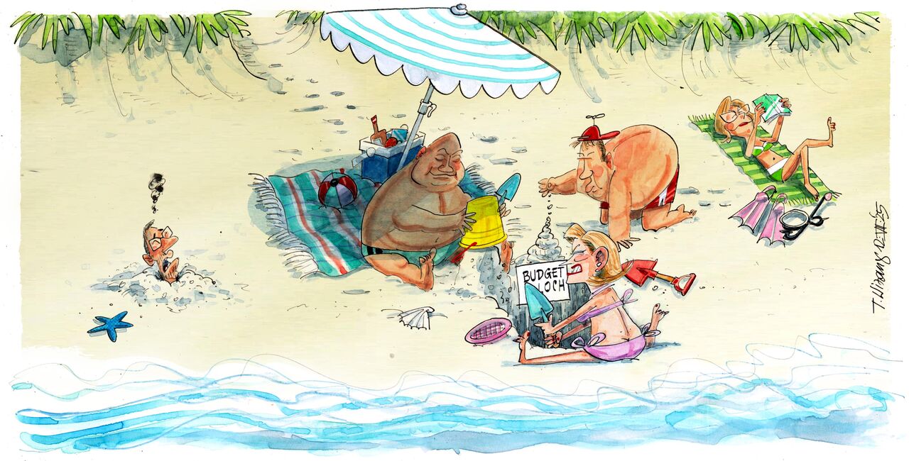 Lassen Sie sich Ihre Wochenendkarikatur von Thomas Wizany signieren.