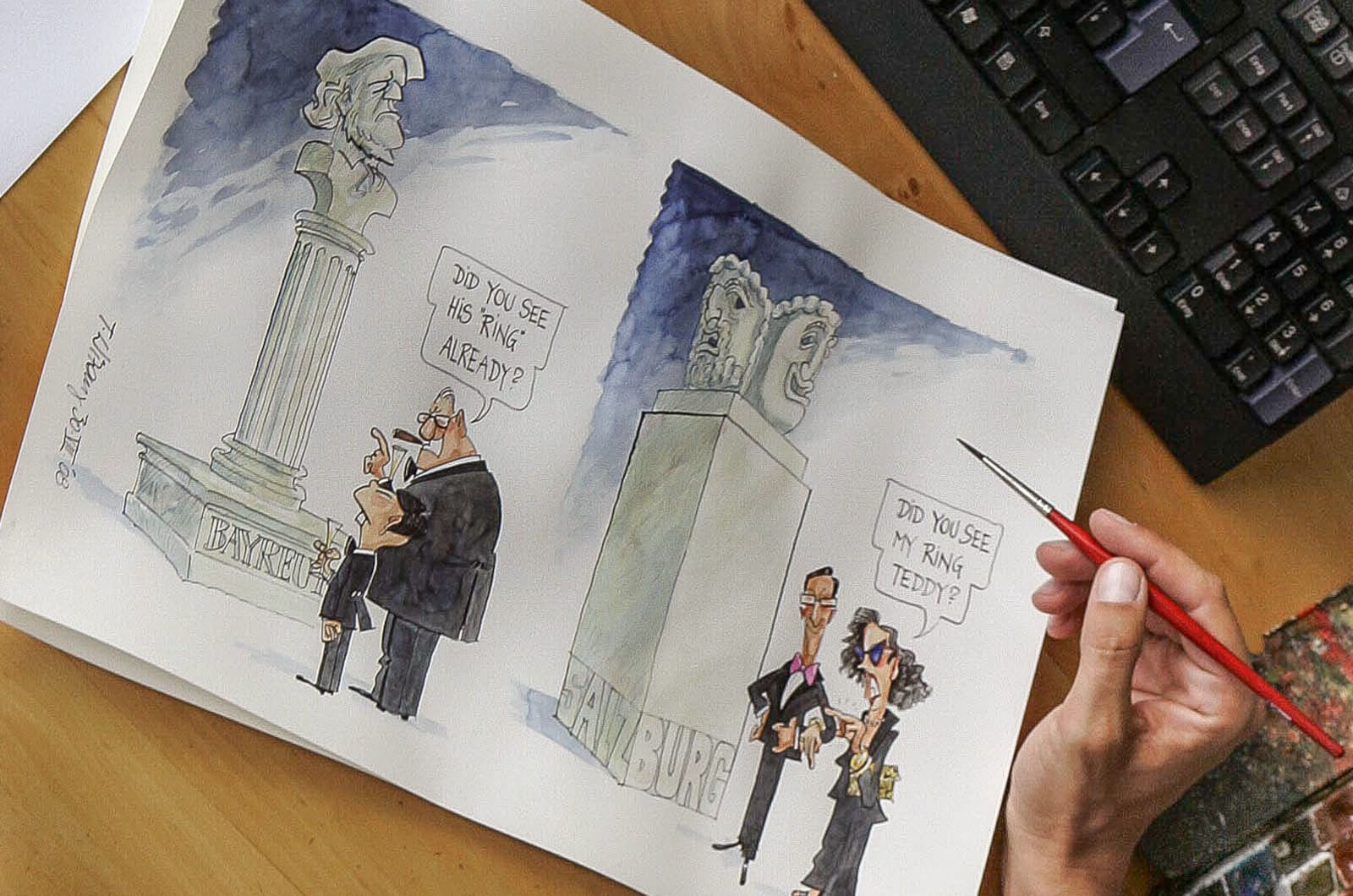 Ihre Karikatur von Thomas Wizany als Druck. Auf Wunsch auch mit Signatur und Widmung. Jede Woche neu.